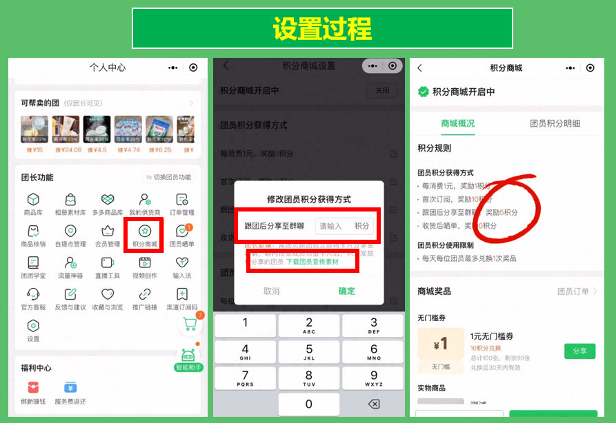 1、 分享到社群的卡片需再次点击 ,才会加积分,团长或团员都可点击(分享至私聊无效);