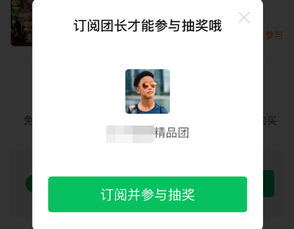 团员想参与您发起的抽奖团购,前提 必须得订阅团主 页,帮团长增加订阅量、团曝光。
