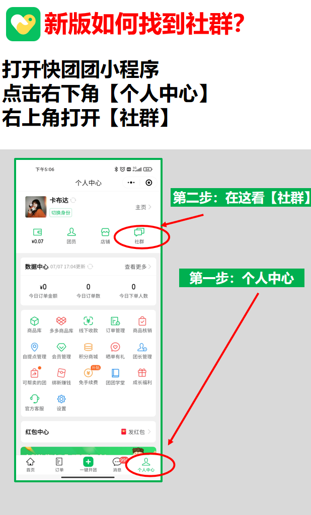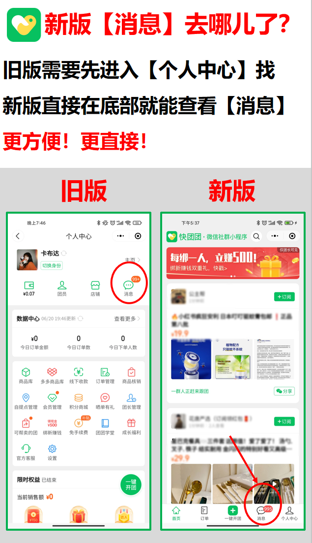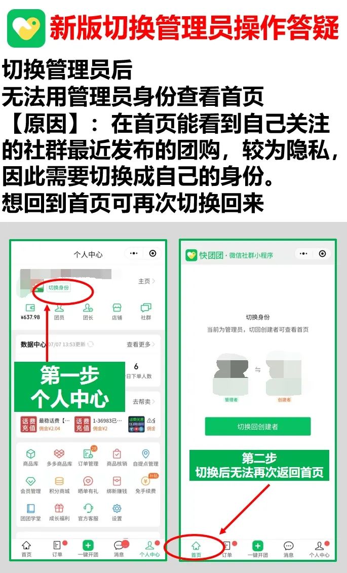 团长相对于用户,会更频繁地从小程序入口进入快团团,因此首页是团长+管理员的必经之地。