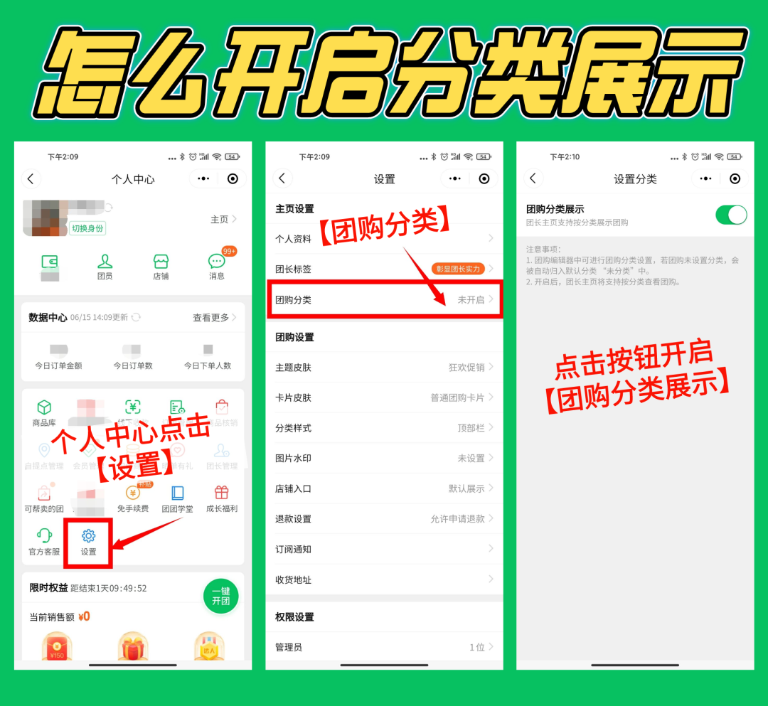 为了帮助团长主页高效展示团信息,促进下单购买,我们新出了 【团购分类管理】 功能。