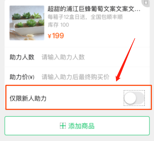 助力低价购可设置"仅限新人助力"