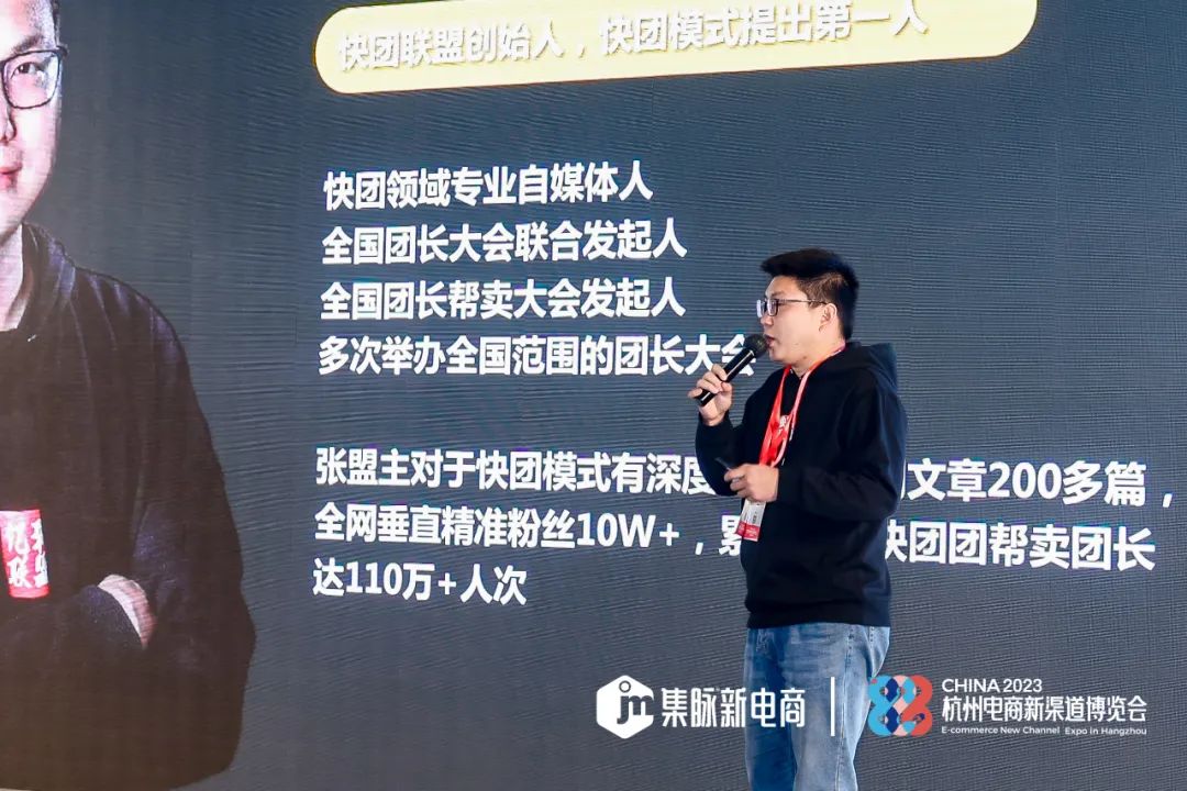 快团团团长妮妮,作为团长代表发言,感谢主办方的邀请,也希望越来越多的人关注到团长这个领域,更多的资源可以进入,越做越好。要找团长出货,除了找张盟主,还可以找妮妮。妮妮有一批团长好姐妹,可以帮大家出货。