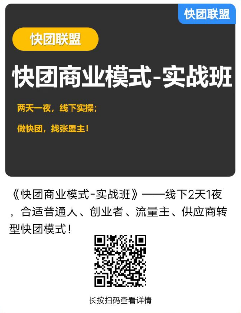 关注抖音【快团张盟主】,每天晚上有直播;公众号【快团联盟】,更多干货,实时更新!