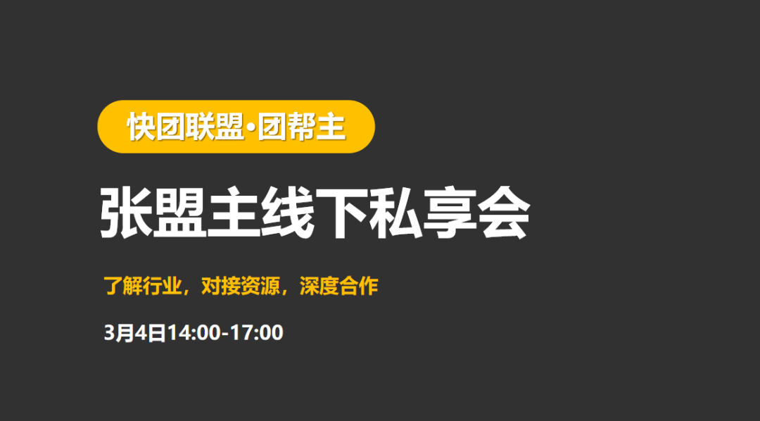 【快团联盟】是 快团模式的行业自媒体&团长社群,分享最新的玩法,对接资源,组织活动(团长闭门会、团长溯源、TOP团长训练营、全国团长帮卖大会)