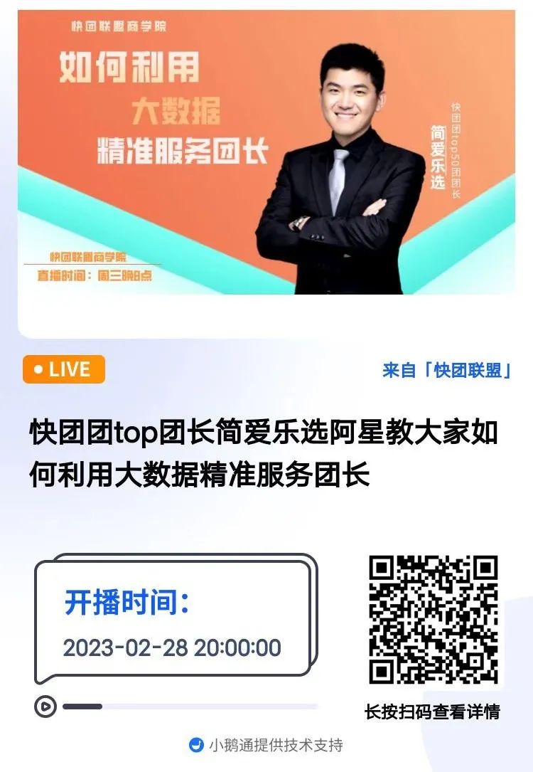 关注抖音【快团张盟主】,每天晚上有直播;公众号【快团联盟】,更多干货,实时更新!