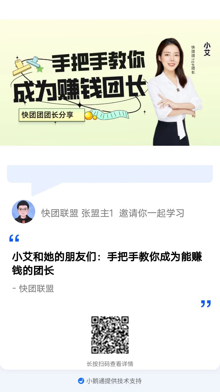关注抖音【快团张盟主】,每天晚上有直播;公众号【快团联盟】,更多干货,实时更新!