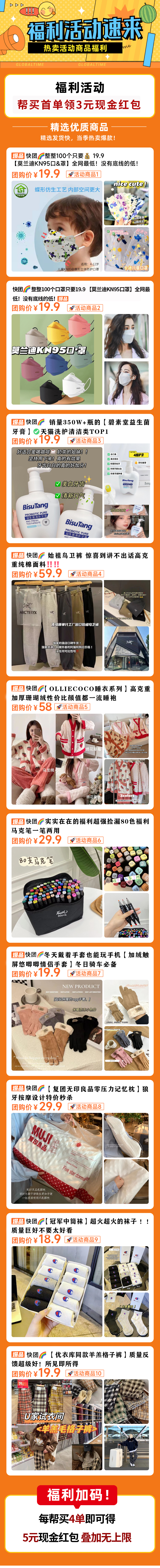 产品 :我们做的是全品类,产品偏向日用百货,家居类,价格区间在9.9~39.9之间,佣金比例在30%左右,都是针对快团团风格的产品,每天刊登15~20款左右产品