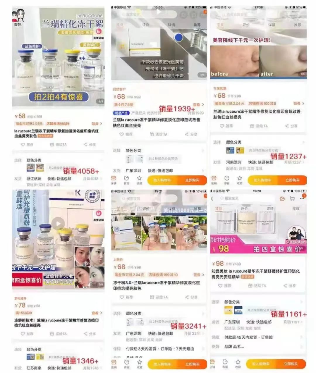 蓝可瑞冻干絮18年专业院线案例无数,从2020年上市电商后更是年销售20万盒,老钟驾到、姹紫嫣红等头部店铺长期主推品,店铺多达100多家!