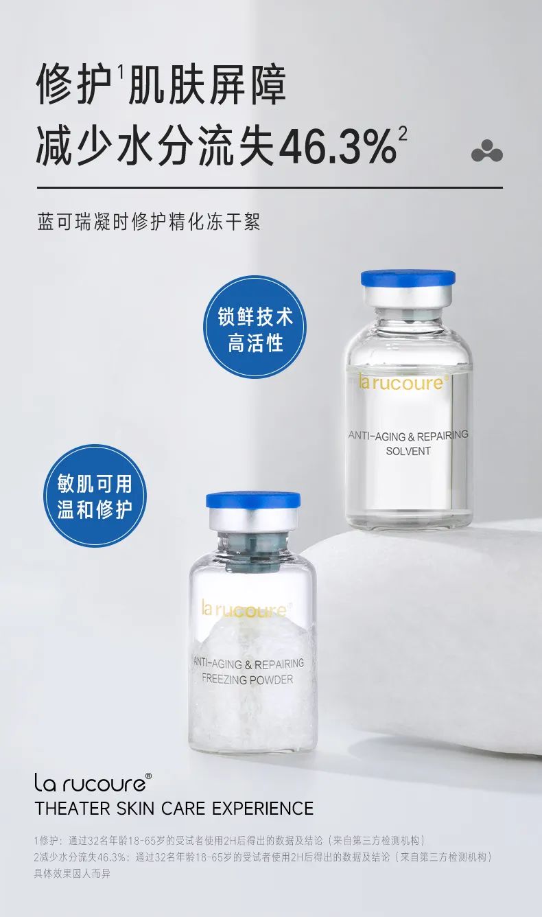 la rucoure蓝可瑞有18年专业院线美肤经验,上千万的真实用户案例,一直秉承着前沿生物科技力为品牌核心实力,主张"3R护肤"理念,倡导"外修复,内赋活",从根源修复到美肤抗衰的中胚层护肤,日化线护肤的天花板,细胞级的护肤理念。