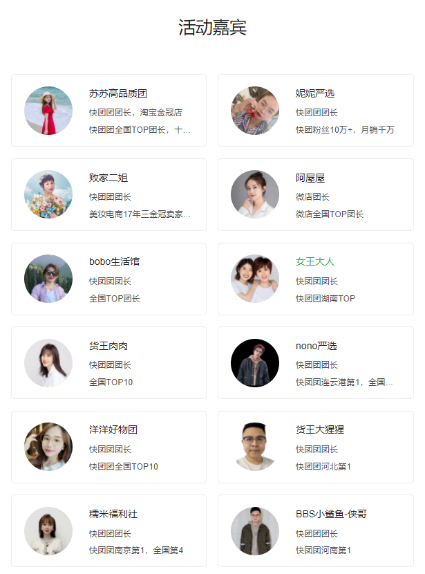 1)精准对接:覆盖快团团、群接龙、微店等全国TOP团长;