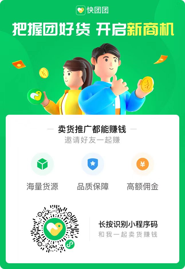 (2)没有在快团团上购买过、开团过、帮卖过的账号,可以注册团好货,注册后,可以帮卖团好货里面的所有产品(几万个团)除了赚帮卖佣金之外,还可以赚推广奖励,有绑定关系,推荐的人持续帮卖佣金,就有持续推荐收益;