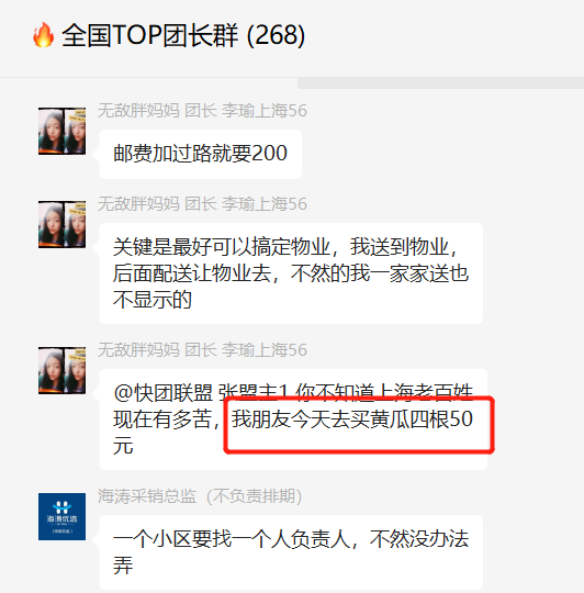 上海团长海涛,最近都在做生鲜水果落地配,给上海居民解决买菜问题;