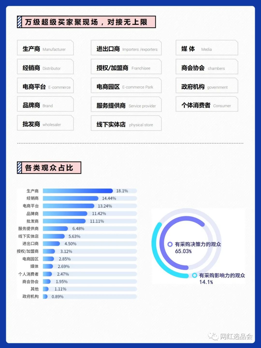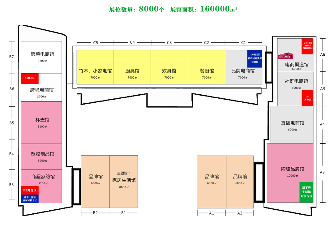 本届展会总面积 160000㎡、8000+展位,1800+精选品牌/制造商  1200+电商渠道/服务商,18大展馆、10+定制化论坛 、13W+专业观众。