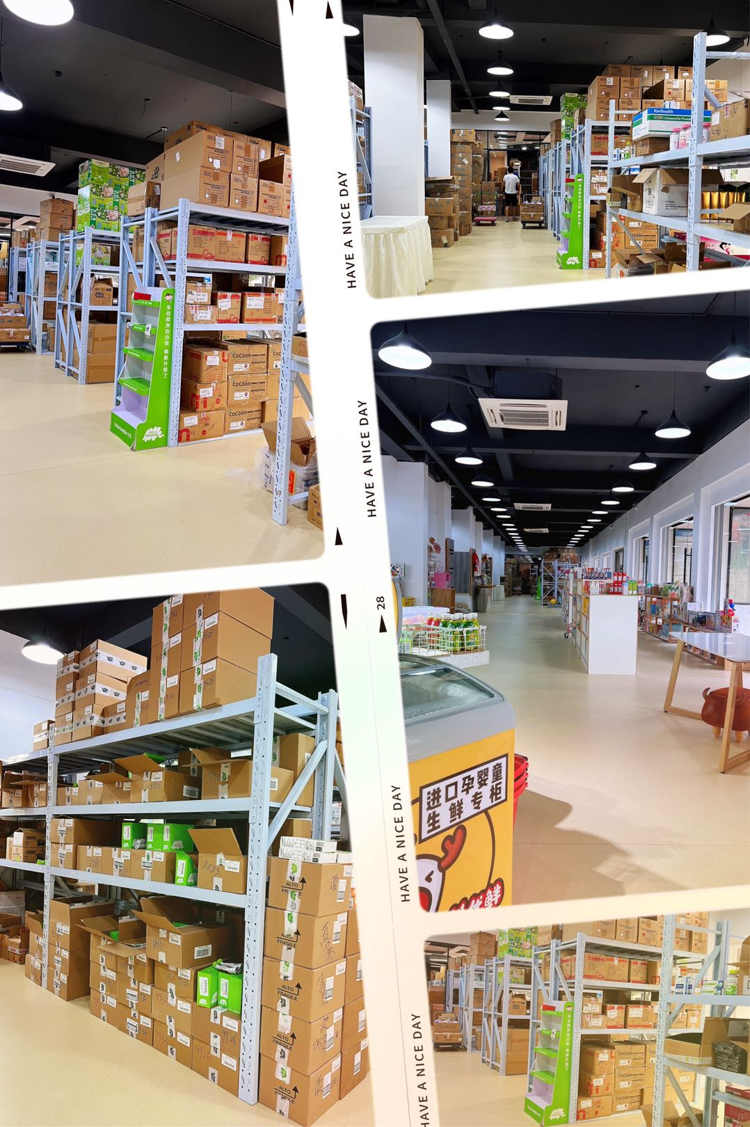 2) 发货 时效高,有保障。 贸易公司有2000平的自主仓库,为全国400家以上母婴门店做批发配货, 在 【 义乌】及【广东】 都设有发货仓库。