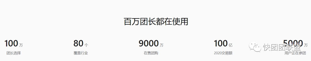 这个是去年的数据,其实就是快团团起步的时候的半年的数据,半年100亿,5000万用户,100万团长,是不是很吓人?