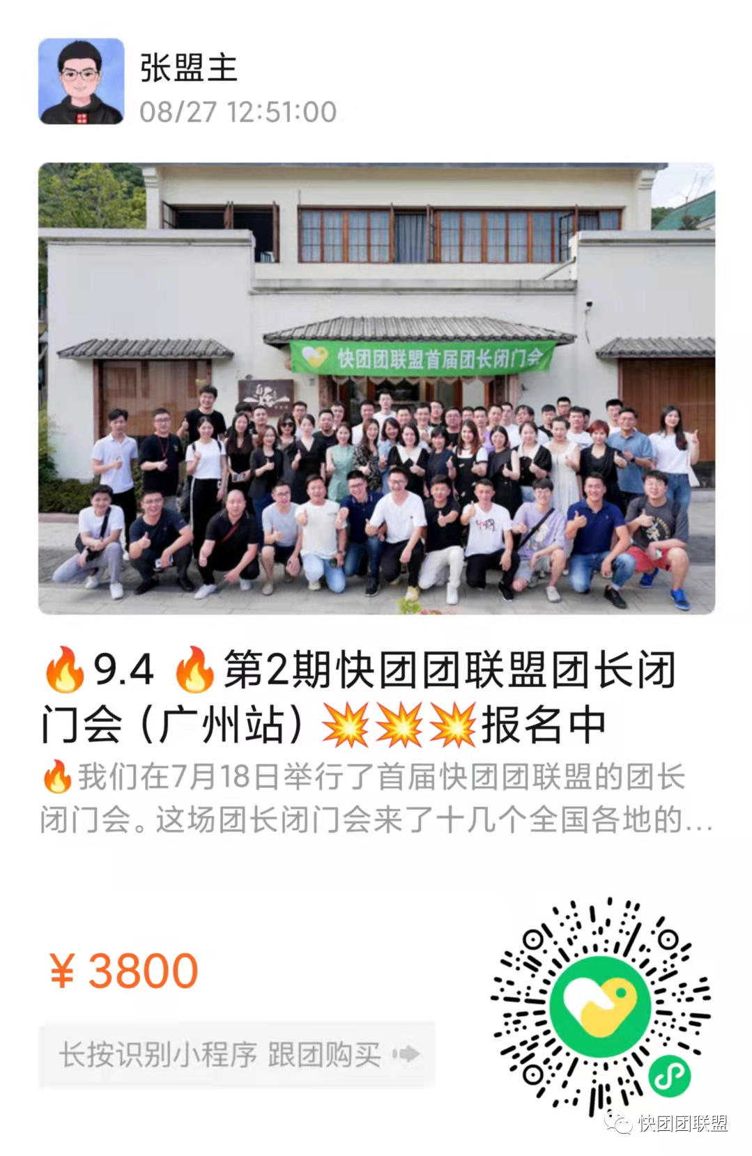 2021/08/27 9.4 第2期快团团联盟团长闭门会(广州站)报名开始