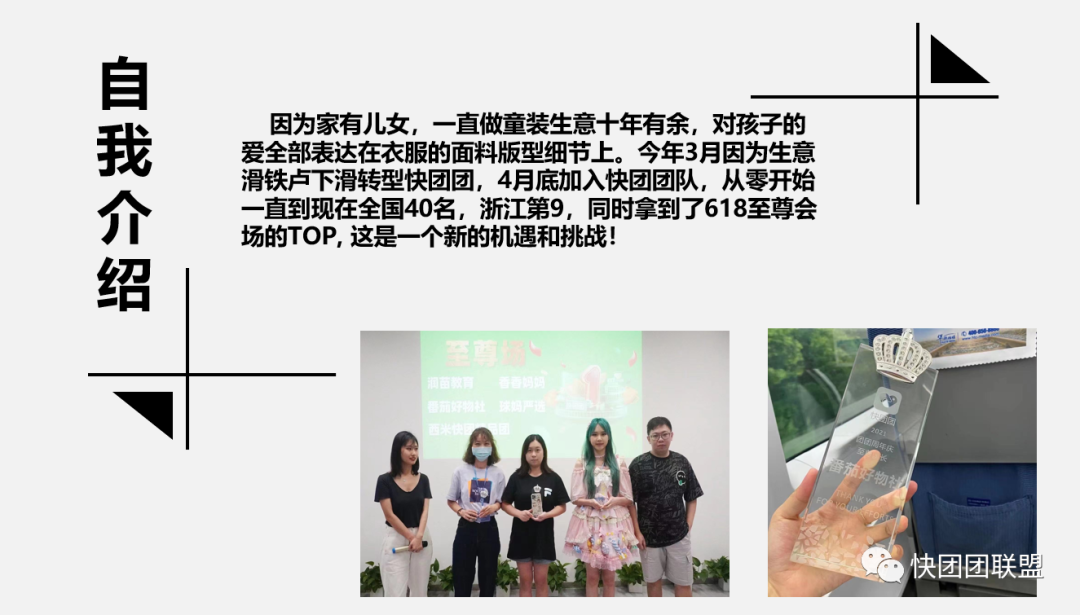 下午的环节是让每一个学员上台分享自己的学习成果,自己介绍快团团的链接,推荐自己的产品。团长会给到学员一个点评和建议。\