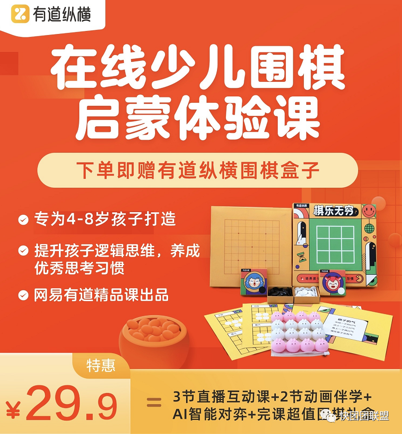 暑期好课-网易少儿围棋(送精美围棋礼盒)仅需29.9元!6节直播课!额外赠送价值300元AI对弈平台!🦙真羊毛!薅起来!