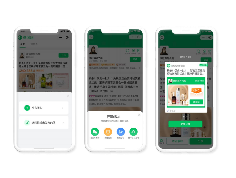 使用群团团后,通过订阅关注、上新推送、一键帮卖等形式,消费者的触达频次更高;通过开团团长推荐、帮卖团长传播、优质笔记分享等方式,消费者的兴趣引导更简单;通过与微商城价格隔离、销量和评价共享、社群晒单等机制,消费者的下单决策更果断。