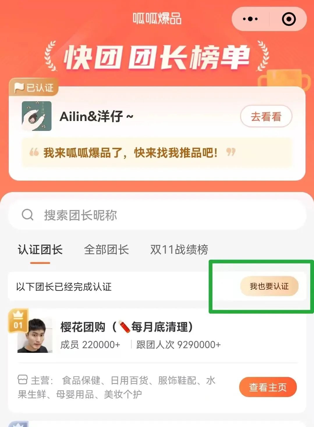它们上线了 【团长认证】 功能,通过认证的团长,不仅可以获得平台的核心曝光,还可以更加便捷的对接供货商,妥妥的流量C位。