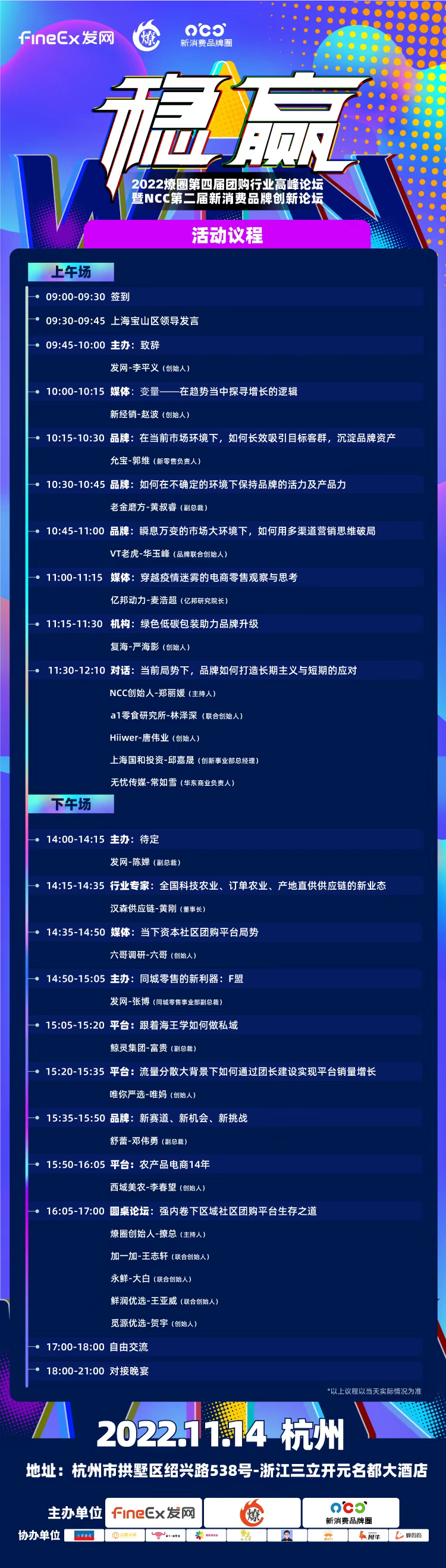 2022/11/10 2022燎圈第四届团购行业高峰论坛,2022年11月14日在杭州举行,发网、燎圈、新消费品牌圈主办,快团联盟协办支持!