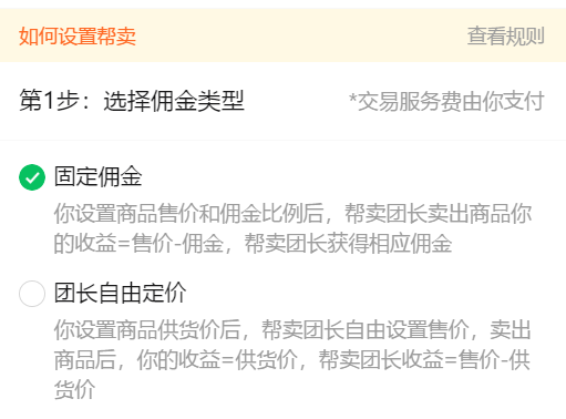 总结:你如果担心打破价格体系,选择固定佣金,如果你希望给到帮卖团长更多定价自由,不担心价格影响,可以选择自由定价!\