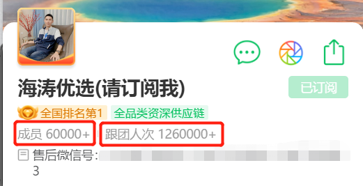 全排名第一的海涛优选,成员6万+,跟团人次126万+,帮卖团长1万人,累计销量150万件,我的天!\